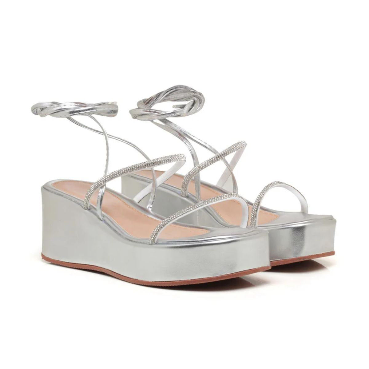 Sandália Plataforma Strass AYO16 Prata